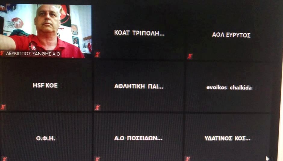Έκτακτη Γενική Συνέλευση με τηλεδιάσκεψη μέσω της πλατφόρμας ZOOM από τα γραφεία της Κολυμβητικής Ομοσπονδίας Ελλάδας, σε εφαρμογή της απόφασης του Δ.Σ στις 5 Μαΐου για τροποποίηση του Καταστατικού της ΚΟΕ, σύμ...